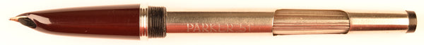 In terms of dating, this is from 1952 as it has the simple Parker cap imprint, the earlier cap clutch design and the 'Made in England' barrel imprint with the date code of '2' with three dots which indicate that this was manufactured in the first quarter of 1952. The cap also features the earlier longer clip which is typical of production in 1949 and the very early 50s