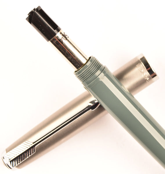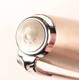 The ballpoint is operated by moving the cap up and down. This ballpoint has the later ratchet mechanism in the cap which works with the plastic threaded barrel. It takes the standard modern Parker ballpoint or gel refills