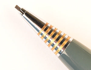 The pencil has the continuous feed clutch type mechanism and is operated by moving the cap up and down.  This takes standard modern 0.9mm leads