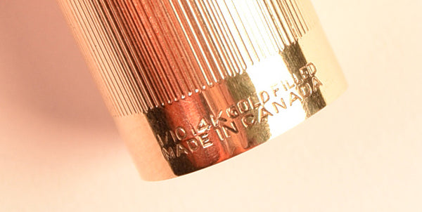 Both caps are imprinted 'Parker' on the front with the gold filled content and 'Made in Canada' on the reverse as shown in the photos above
