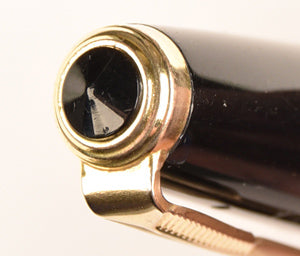 We have fully serviced this pen which includes disassembling the pen, ultrasonically cleaning all the parts and fitting a new ink sac. We then reassemble the pen, check ink flow and the smoothness of the nib. We also check and adjust the tightness and positioning of the clip.