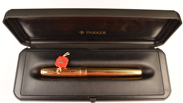 This is the Parker Sonnet fountain pen in the 23k gold plated Cascade design with the broad cap lip which was in production from 1997-2003