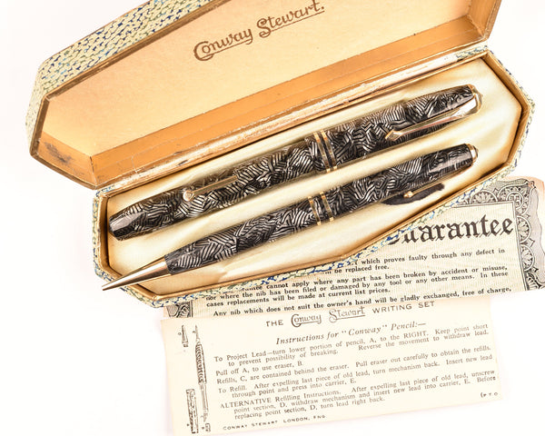 These have only been lightly used, are in excellent overall condition and come with an original Conway Stewart card box and guarantee, noting some ink staining to the inside box lining