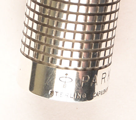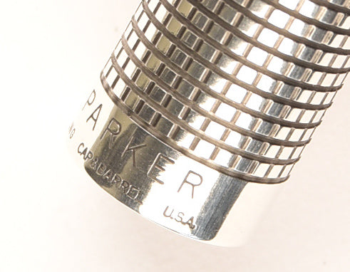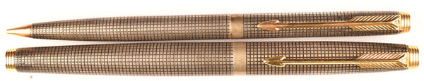 Produced in the USA, this is a Parker 75 fountain pen and pencil set in sterling silver in the small squares pattern known as the Cisele design