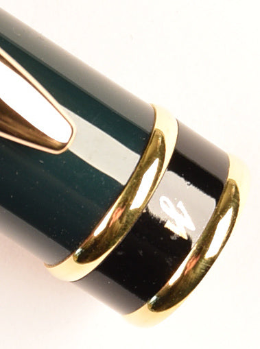 Manufactured in France, this is an example of a Mk1 Expert ballpoint in the popular dark green which Waterman termed 'Armour Green' which is neatly set off by the gold clip and trim