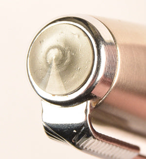 We have fully serviced this pen which includes disassembling the pen, ultrasonically cleaning all the parts and fitting a new pliglass ink sac. We then reassemble the pen, check ink flow and the smoothness of the nib. We also check and adjust the tightness and positioning of the clip.