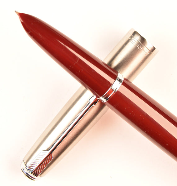 This dates from the early 1960s as the cap has the shorter clip, the later four prong clutch and the simple Parker imprint on the front