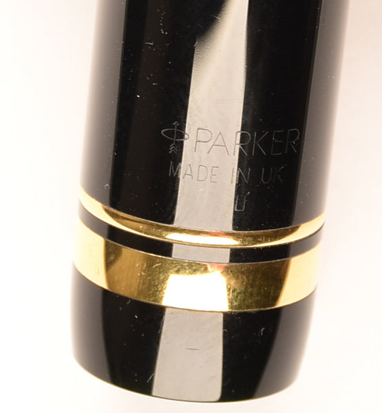 Produced in England, this is a Centennial Duofold fountain pen in black from around 1991. This is fitted with a medium 18k gold bicolour nib with the arrow imprint which produces a writing line of around 0.6mm