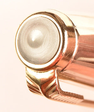 In terms of dating, the cap has the simple 'Parker' imprint to the front and the standard '1/10 12ct R.Gold' imprint to the rear. The cap has the the earlier cage clutch but the later shorter clip so mid/late 1950s