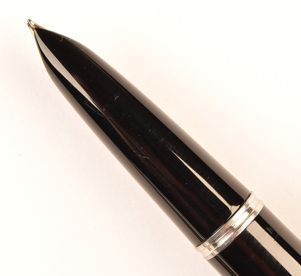 We have fully serviced this pen which includes disassembling the pen, ultrasonically cleaning all the parts and fitting a new pliglass ink sac. We then reassemble the pen, check ink flow and the smoothness of the nib. We also check and adjust the tightness and positioning of the clip.