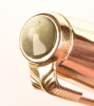 In terms of dating, the cap has the simple 'Parker' imprint to the front and the standard '1/10 12ct R.Gold' imprint to the rear.  The cap has the the earlier cage clutch but the later shorter clip.  It also lacks the barrel imprints which stopped towards the end of the 1950s.  So overall, the indications are that this is from the late 1950s